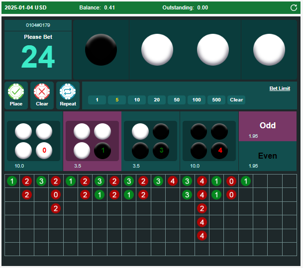 – Even សម្រាប់ចាក់ គូរ ខ្មៅ4/ស4/ស2ខ្មៅ2 ( ចេញ ខ្មៅ2 ស 2 សំរាប់ការចាក់លើ លេខ 0/1/3/4 ចាញ់ )